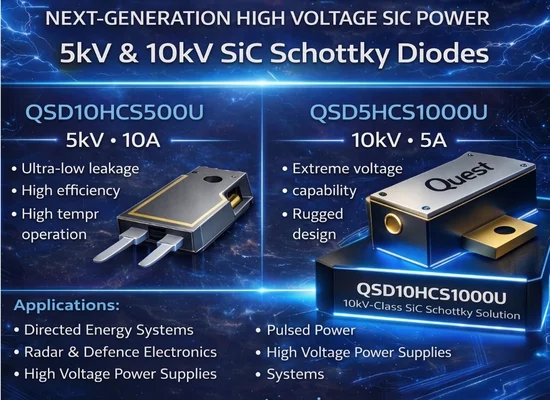 In the theater of modern electronic warfare, response time and thermal resilience are non-negotiable. Quest Semiconductorsโ Ultra-High Voltage Silicon Carbide (SiC) Schottky Barrier Diodes are specifically engineered to meet the extreme demands of Direct Energy Weapons (DEW) and Anti-Drone (C-UAS) High-Power Microwave (HPM) systems.